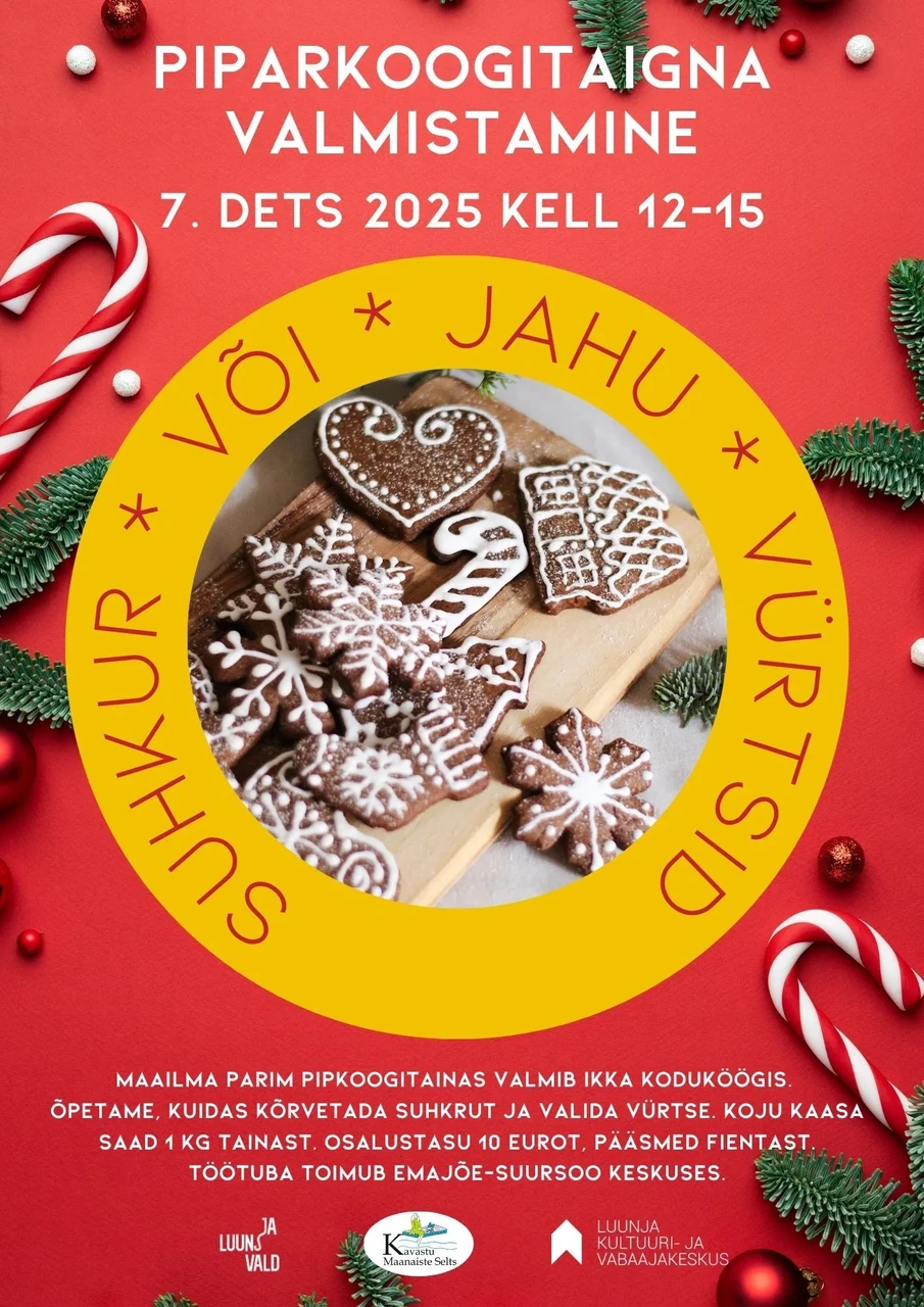 7. detsembril kell 12-15 saab emajõe-Suursoo keskus täis piparkoogihõngu, sest valmistame koos huvilistega üüratu koguse piparkoogitainast. Meie poolt kõik peened vürtsid, parim või ja jahu, teie poolt säravad silmad ja soov kõrvetada suhkrut ning sõtkuda tainast. Iga osaleja saab kaasa 1 kilo isetehtud tainast, mida on hea lasta paar päeva külmas tõmmata.