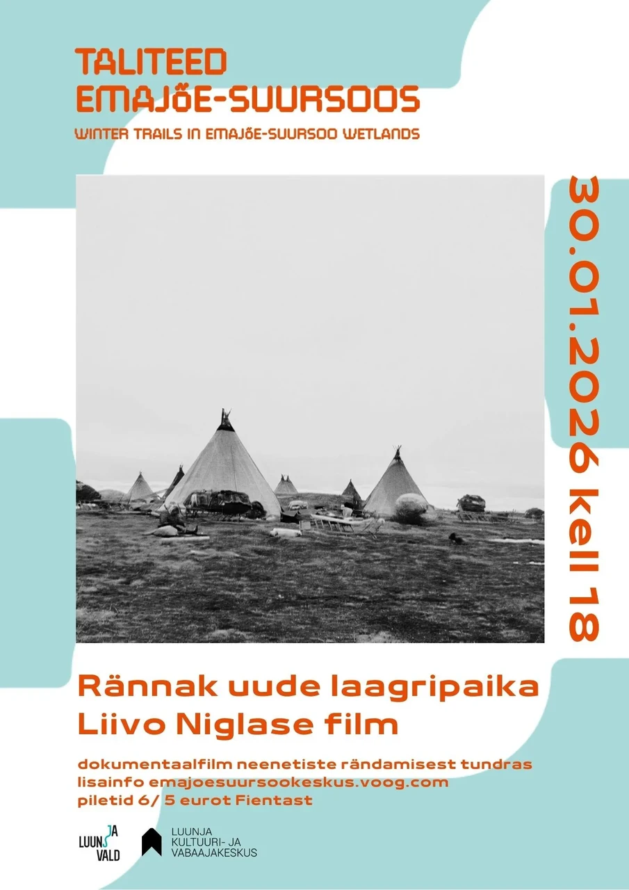 30. jaanuar kell 17 Kaupo Kikkase näituse avamine30. jaanuar kell 18 Liivo Niglase film "Rännak uude laagripaika" (2025), pärast filmi vestlusring neenetsitest